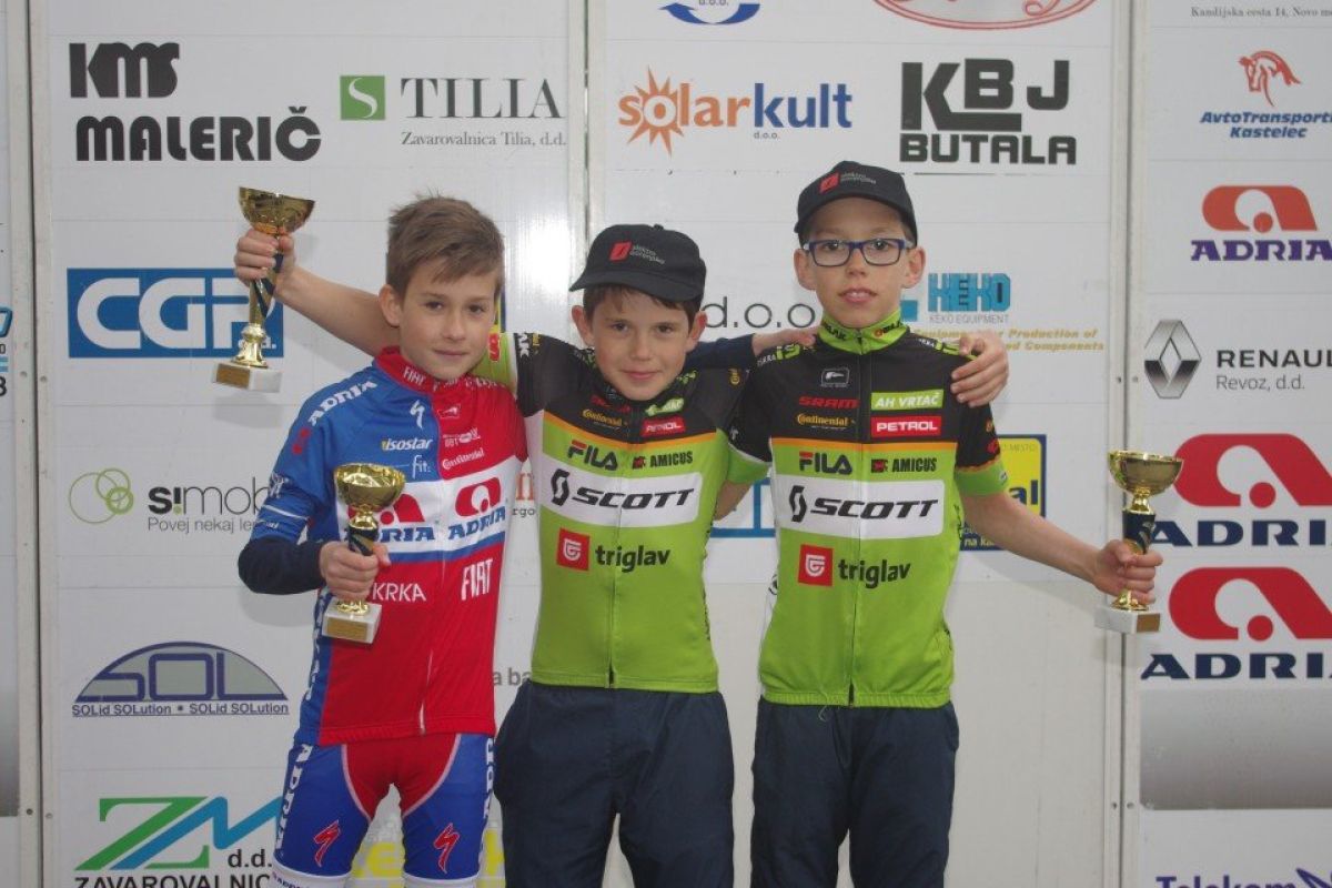 pri dečkih A je zmagal Gal Glivar (14 let) in kljub zmagi trenerjem povzročil nekaj sivih las. Jaka Špoljar (13 let) pri dečkih B letos skoraj ne pozna poraza in tako je bilo tudi v Dragatušu. Jošt Badovinac (12 let) je še tretji kolesar Adrie, ki je zmagal na dirki za slovenski pokal med dečki C. Tokrat so najmlajši izjemoma nastopili še v dveh starostnih skupinah D in E. Deček D, BOŽNAR Enej Prosen (11 let) iz Save Kranj je edini, ki je v nedeljo premagal Adrio. Najmlajši dečki so nastopili v kategoriji dečki E. Svojo prvo zmago v karieri je dosegel desetletni Kristian Tisovec, ki mu je očitno številka ena katero je nosil prinesla srečo. Po dirki je dejal: »Prve zmage nisem pričakoval. Vzpodbujali so me zelo glasni navijači. Trenerji so mi naročili taktiko, moj oči pa mi je še naknadno povedal, kdaj in od kje naj grem na polno do cilja, tako sem tudi storil in zmagal. Ta zmaga mi pomeni veliko vzpodbudo za naprej in vidim, da se obrestuje moja vztrajnost na treningih«.