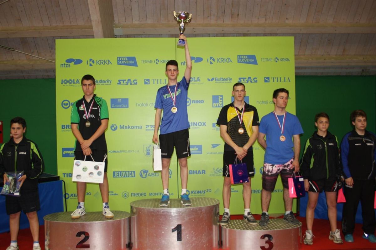 V spodnji polovici žreba sta do polfinala prišla mlada Darko Jorgić in Deni Kožul. Jorgić je v osmini finala s 4:3 na 9 prvič v letošnji sezoni uspel ugnati Ludvika Peršoljo, Kožul pa je proti Patriku Sukiču in Gregorju Zafoštniku izgubil vsega en niz. Polfinale med trenutno najboljšima mladincema v Sloveniji ni razočaral, na koncu pa se je veselil Jorgić, ki je po 45 minutah slavil s 4:3 (-5, 9, -9, 9, -9, 6, 9). Finale med letošnjima soigralcema v dresu Krke je obljubljalo lepo borbo med mladostno zagnanostjo in izkušnjami, žal pa je moral Jorgić po izgubljenem 1. nizu, sredi drugega dvoboj zaradi krčev v desni nogi, dvoboj predati.
