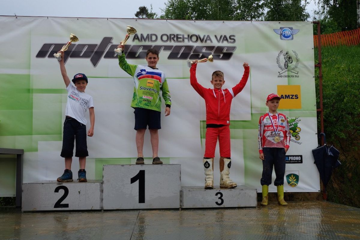 Prva tri mesta kategorije Junior 50 so si razdelili Jaka Peklaj, Žiga Grebenc in Tadej Škratek, medalje pa so domov odnesli prav vsi. Steza v Orehovi vasi je zaradi strmih vzponov in spustov, valov in skokov trd oreh za vse, za nastop na stezi evropskega kalibra pa je medalja za pogum najmanj, kar si juniorji zaslužijo. V kategoriji Junior 65 so bili tokrat le štirje tekmovalci, dvignili pa so toliko prahu, kot bi jih bilo štirideset. Pokale so nad glavo dvignili najhitrejši Gal Hauptman, Botond Hateier z Madžarske in Jaka Osek.