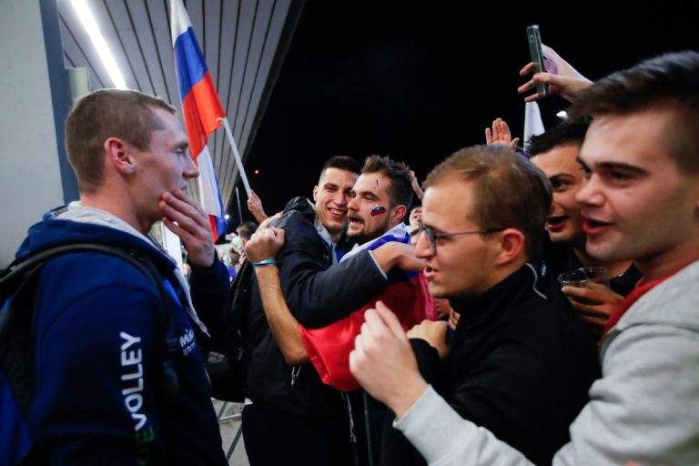 Glasbo so ob prihodu odbojkarjev pred letališko stavbo preglasile raglje, troblje, vuvuzele in glasno navijanje množice. Prvi je pokal za osvojeno drugo mesto v Evropi nato na letališču vidno vesel dvignil kapetan slovenske reprezentance Tine Urnaut, za njim pa ostali slovenski junaki minulih dveh tednov, ki so še enkrat navdušili množico, ki je v preteklih dneh pokazala, da si je odbojka na domačem evropskem prvenstvu priigrala zvesto občinstvo.
