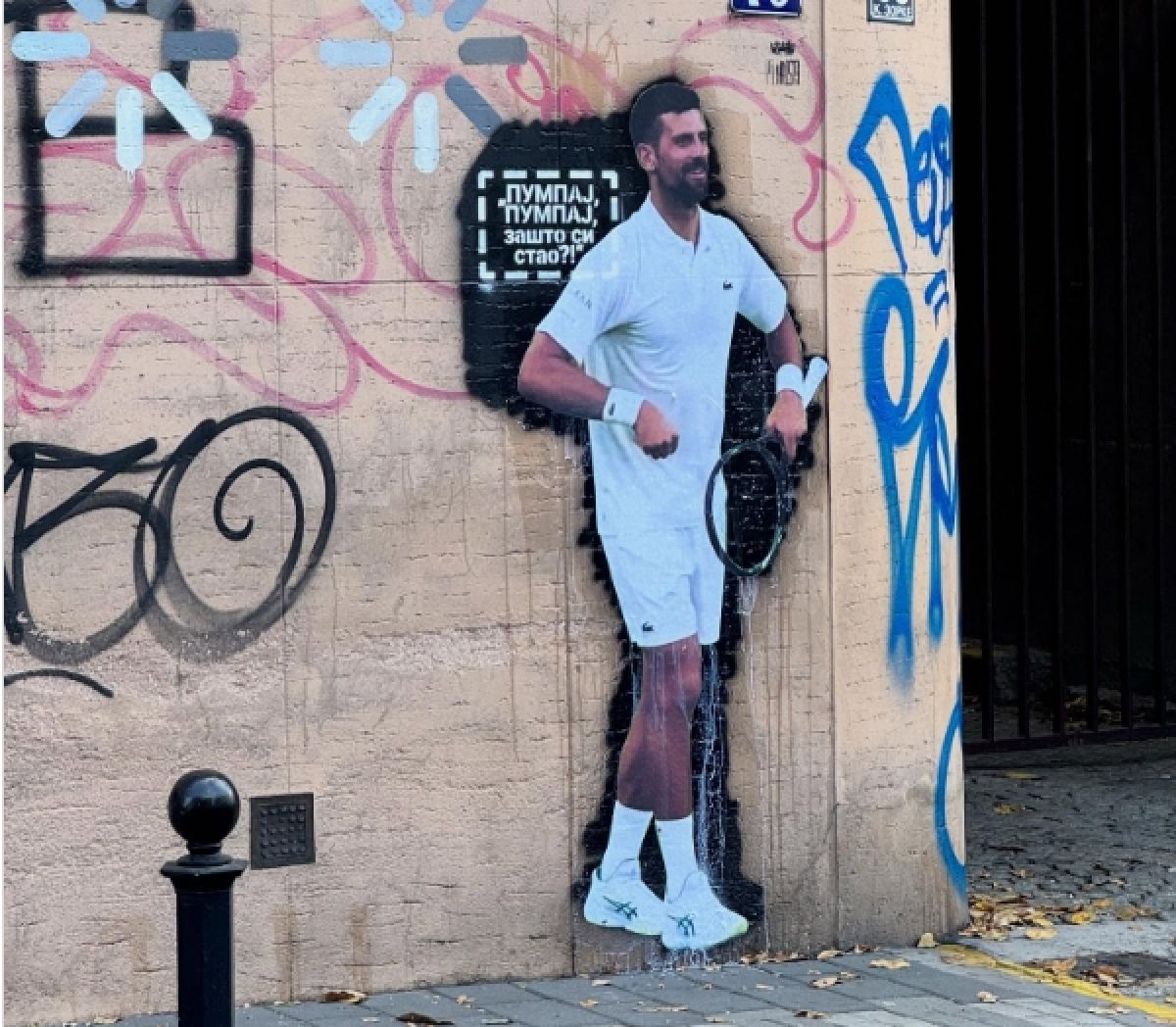 Na muralu je bil narisan Đoković ob njem pa napis: “Pumpaj, pumpaj, zašto si stao!?” (Pumpaj, pumpaj, zakaj si se ustavil).