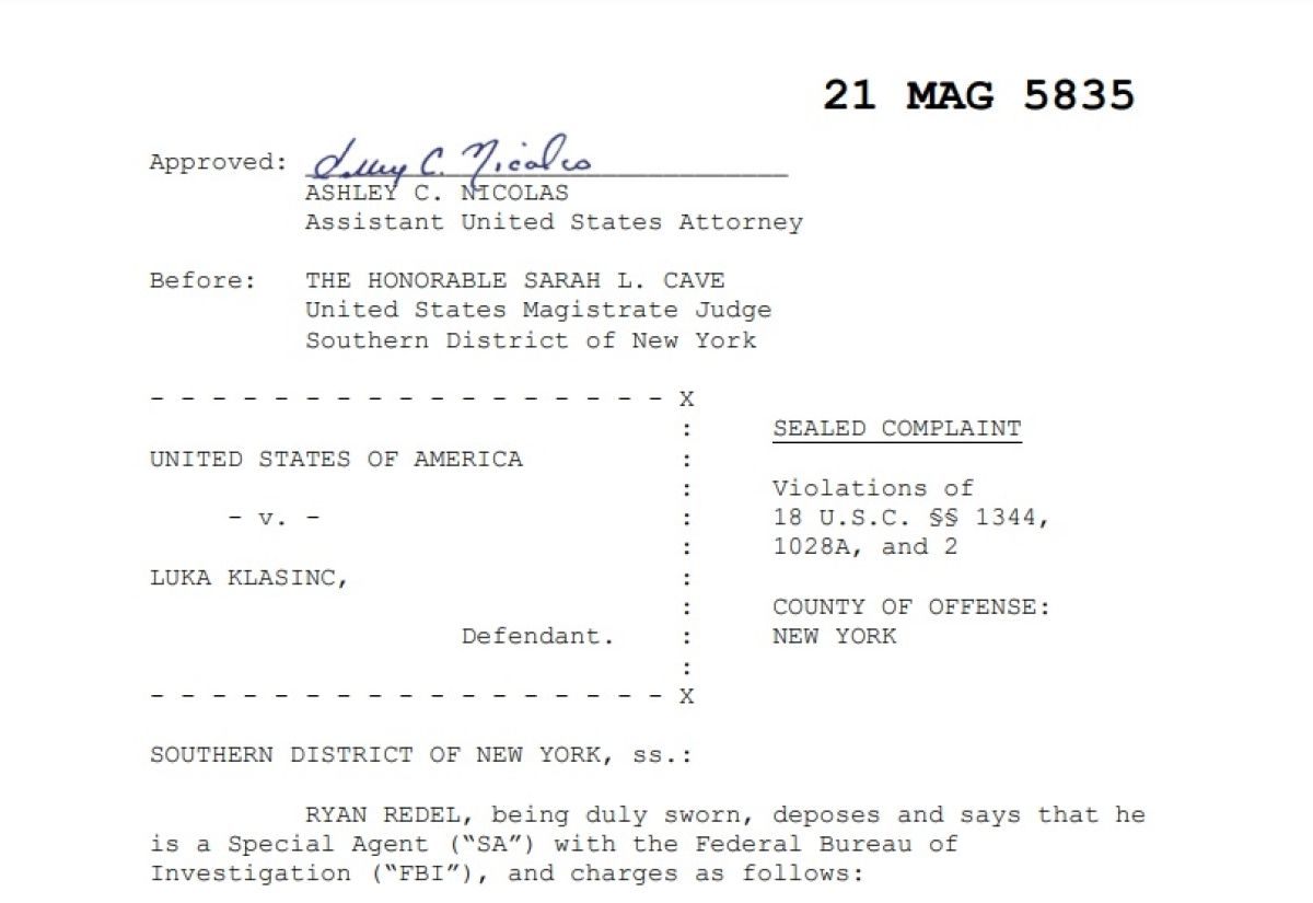 Luka Klasinc naj bi naplahtal ameriške oblasti in si želel prisvojiti 1,5 milijona evrov. Del denarja je že nakazal na račune v Sloveniji, Mehiki, Indiji in na Kitajskem.