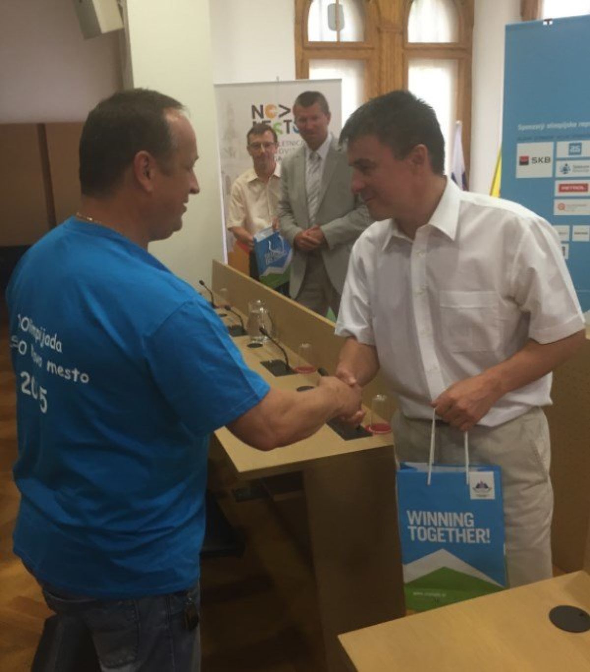 Ob 11.30 je potekal svečani sprejem zmagovalcev prve olimpijade krajevnih skupnosti Mestne občine Novo mesto. Zmagovalka krstne izvedbe projekta, katerega idejni vodja je bil predsednik ŠD Drska Matjaž Papež, je bila ekipa KS Drska, ki je tako od OKS-ZŠZ prejela nagrado za prvo mesto. Matjaž Papež se je zahvalil za podporo ter vzpodbudo OKS in izročil mag. Sodržniku simbolično darilo.