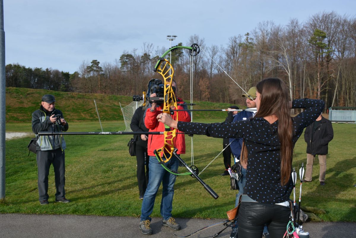Ellisonova sta na šolskem igrišču nato prikazala streljanje z lokom in z obiskovalci delila številne podrobnosti tega zanimivega, a ne zelo zelo popularnega in med množicami znanega športa.