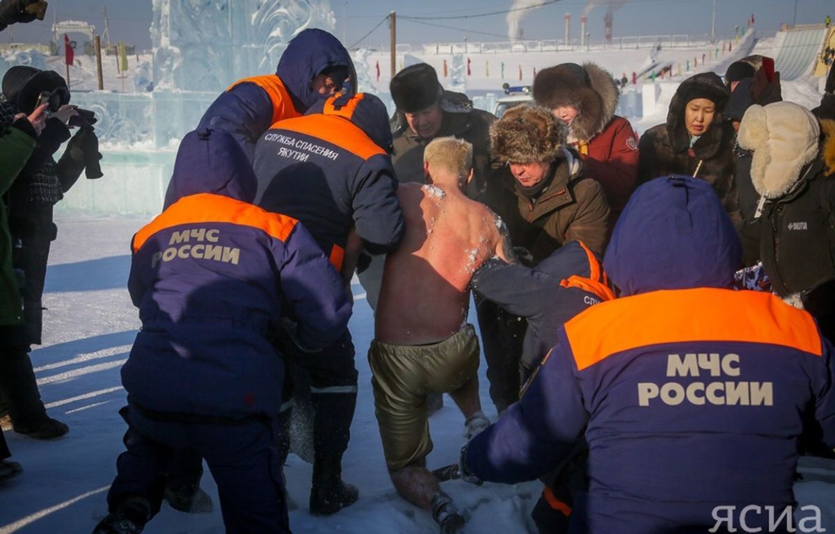 Rus Oleg Rezanov je v zlatih kratkih hlačah legel v ledeni grob v obliki srca. Grob so nato polili z vodo, ki se je nemudoma spremenil v led. 12 minut in 52 sekund je počival pri temperaturi -32 stopinj Celzija, preden ga je otela vrela voda. Tako je za valentinovo na zamrznjeni gladini reke Lena ženi Irini izkazal svojo ljubezen.