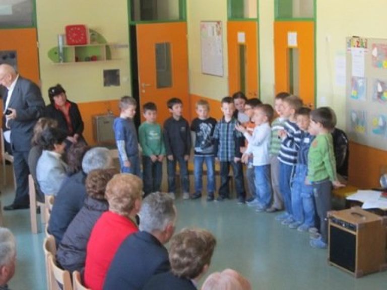 Otroci iz skupine Zvezdic so obiskali V Domu starejših občanov Metlika gospo Angelco in ji izrekli voščilo ob njenem stotem rojstnem dnevu. Zapeli so ji pesmico in predali rože.