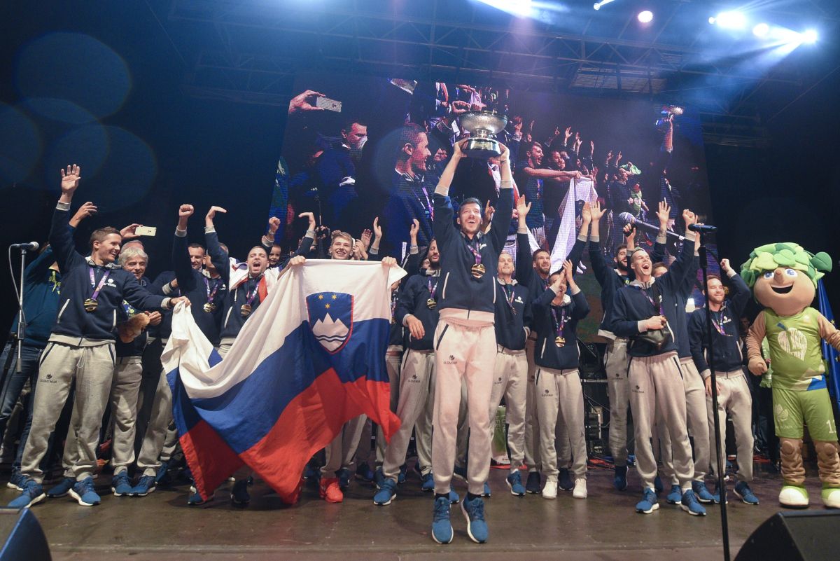 Luka Prepelič je dejal, da je prepričan, da so vsi košarkarji prikazali življenjsko predstavo, Edo Murić pa je pristavil, da so postali kot bratje. Jaka Blažič je še enkrat ponovil, da so vedeli že od začetka, kako se bo odvilo evropsko prvenstvo. Luka Dončić je potrdil, da bo čez dva tedna nared in priznal, da je bil presenečen, da je dobil vabilo v reprezentanco. Razkril je tudi, da je svojega psa poimenoval po risanki Nodi. »MVP, MVP, ...« je vzklikala množica, ko je v ospredje stopil kapetan Goran Dragić. Ta je med drugim dejal, da moramo biti ponosni, da imamo Luko Dončića, in se zahvalil vsem igralcem, ki so prišli pred njim. Ob tem je posebej izpostavil Jako Lakoviča.