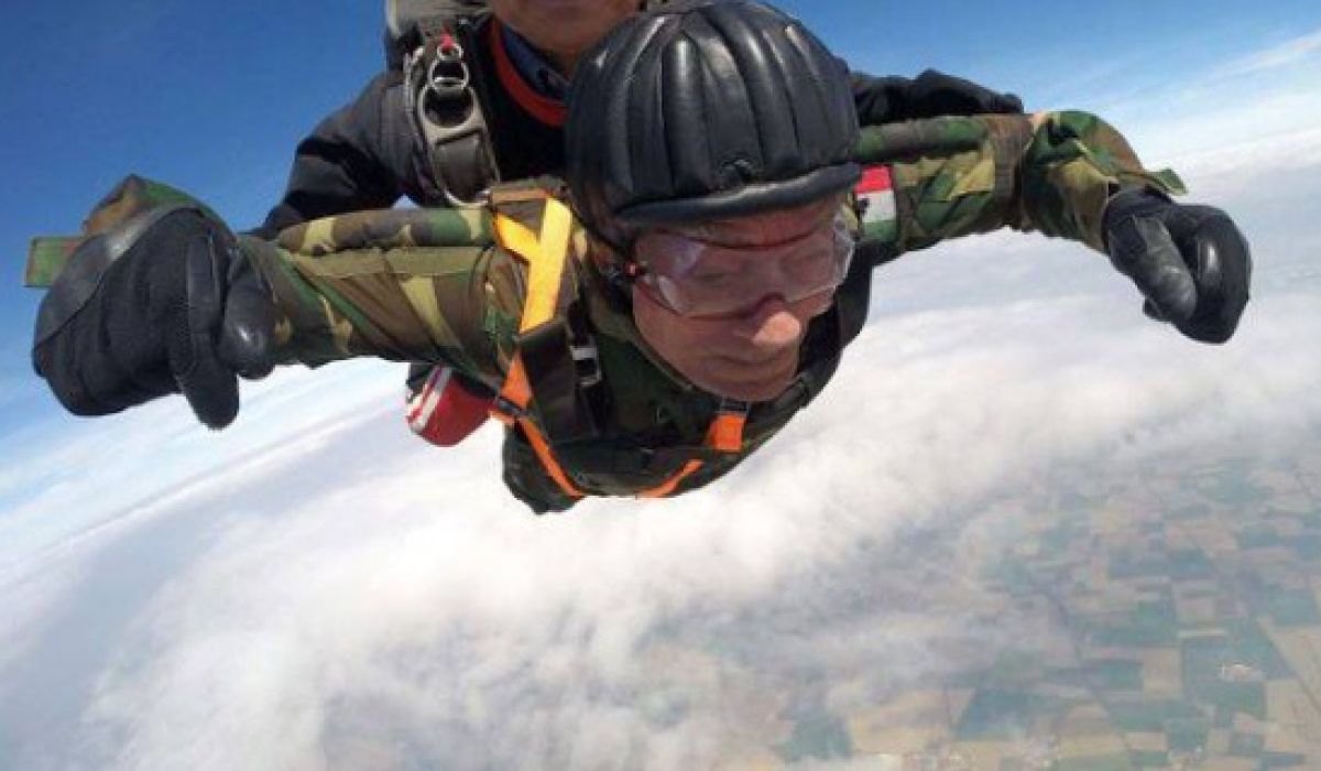 VIDEO: Šestindevetdesetletni veteran zadnjič skočil s padalom