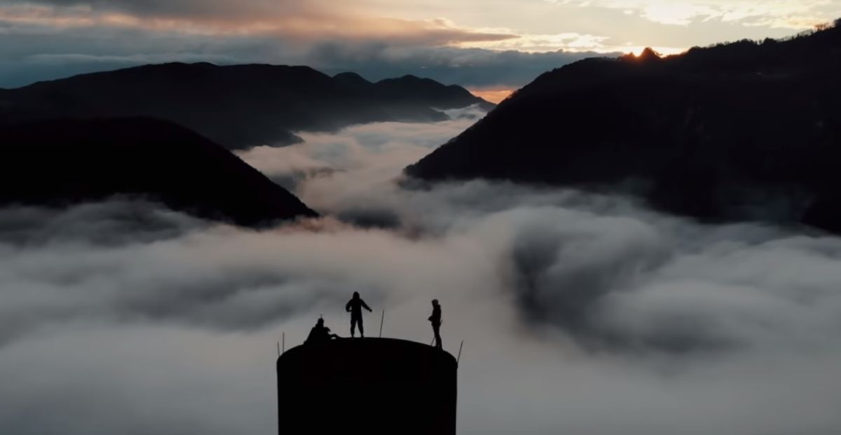 Pogumneži so se namreč povzpeli na 360 metrov visoki dimnik Termoelektrarne Trbovlje, najvišji dimnik v Evropi in sedmi najvišji na svetu. "Vlakom smo se morali izogibati 40 minut, noč pa preživeli na vrhu dimnika, kjer smo bili priča najbolj noremu sončnemu vzhodu, kar smo jih videli," še piše v opisu posnetka.
