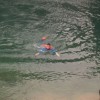 Med petimi skakalci, ki so letošnjega prvega januarskega mrzlega dne skočili in pogumno zaplavali v reko Krko, so "stalne stranke" Tomaž Špelko, Dare Hribar in Igor Golob. Skoke v Krko s 5-metrskega mostu je odprl prav domačin iz Soteske Igor Golob, ki je povedal, da sodeluje pri skokih pravzaprav od samega začetka. V ledeno Krko, temperatura reke je bila namreč le nekaj stopinj nad ničlo, sta za njim skočila Matic Kuhelj in Timotej Pečjak kot "superman", oba iz Stavče vasi. Prvo serijo skokov sta zaključila Dare Hribar in Tomaž Špelko (z obvezno kravato), oba doma iz vasi Križi pri Žužemberku. Sledilo je nekaj minutno ogrevanje, ki so ga pripravili kar v »priročni garderobi« Hribarjevega kombija ...