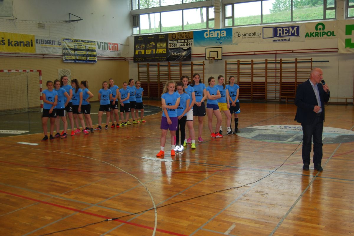 Ob huronskem navijanju in pred polnimi tribunami naše telovadnice se je pričela finalna tekma med OŠ Toneta Čufarja Maribor in OŠ Trebnje. Pred tekmo smo se dogovorili, da je potrebno izvajati pritisk na obrambne igralke, saj smo se zavedali, da so gostje individualno zelo močne in tudi tehnično dobro podkovane. Z našim nenehnim pritiskom smo gostje spravljali ob živce, kar se je poznalo tudi v njihovi zelo grobi igri. Gostje so si prislužile kar 3 izključitve. Mrežo je že v prvem polčasu načela iz prostega strela Lara Lobe in nam odprla vrata do naslova državnih prvakinj. Po golu se je nervoza na gostujoči strani samo še stopnjevala. Uspevalo jim ni prav nič, kar se je odrazilo še v dveh izključitvah. Zadnjo izključitev smo zelo dobro izkoristili, saj je ob igralki več zadela Tamara Pate. Gostje so le enkrat nevarno streljale v okvir vrat, pa še takrat je strel brez težav ubranila naša vratarka.