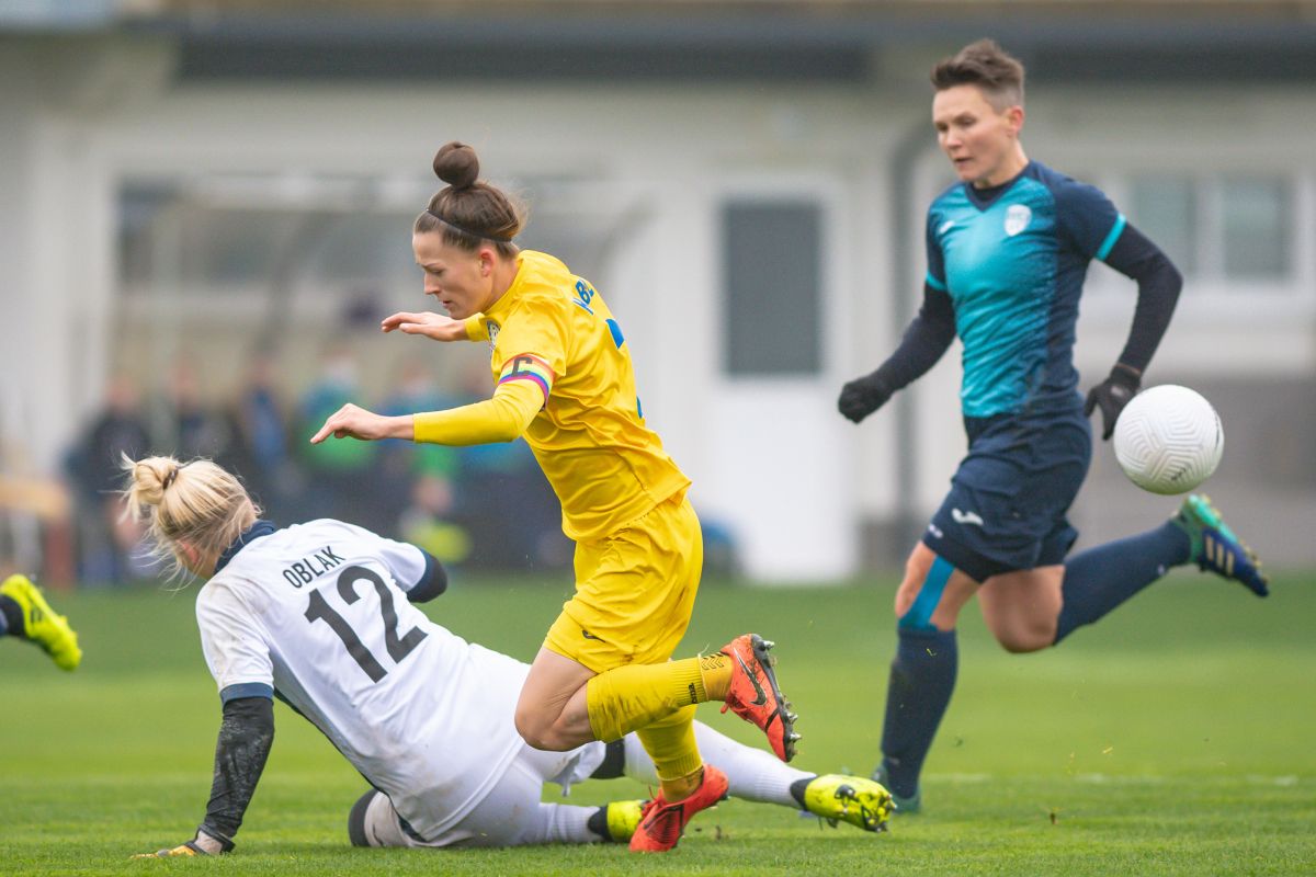 V 54. minuti je po pritisku Pomurk natančno merila Sara Makovec - 3 : 0.