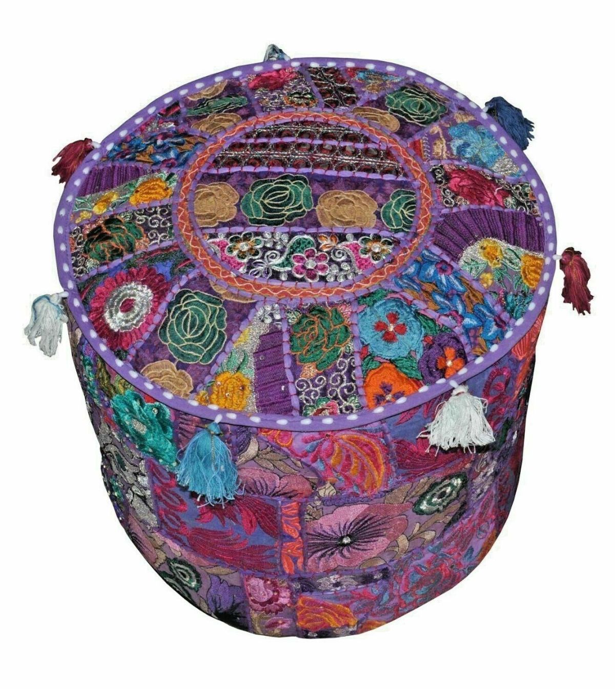 Ročno izdelani pisani tabureti s cofki v duhu Indije pričarajo etno stil.