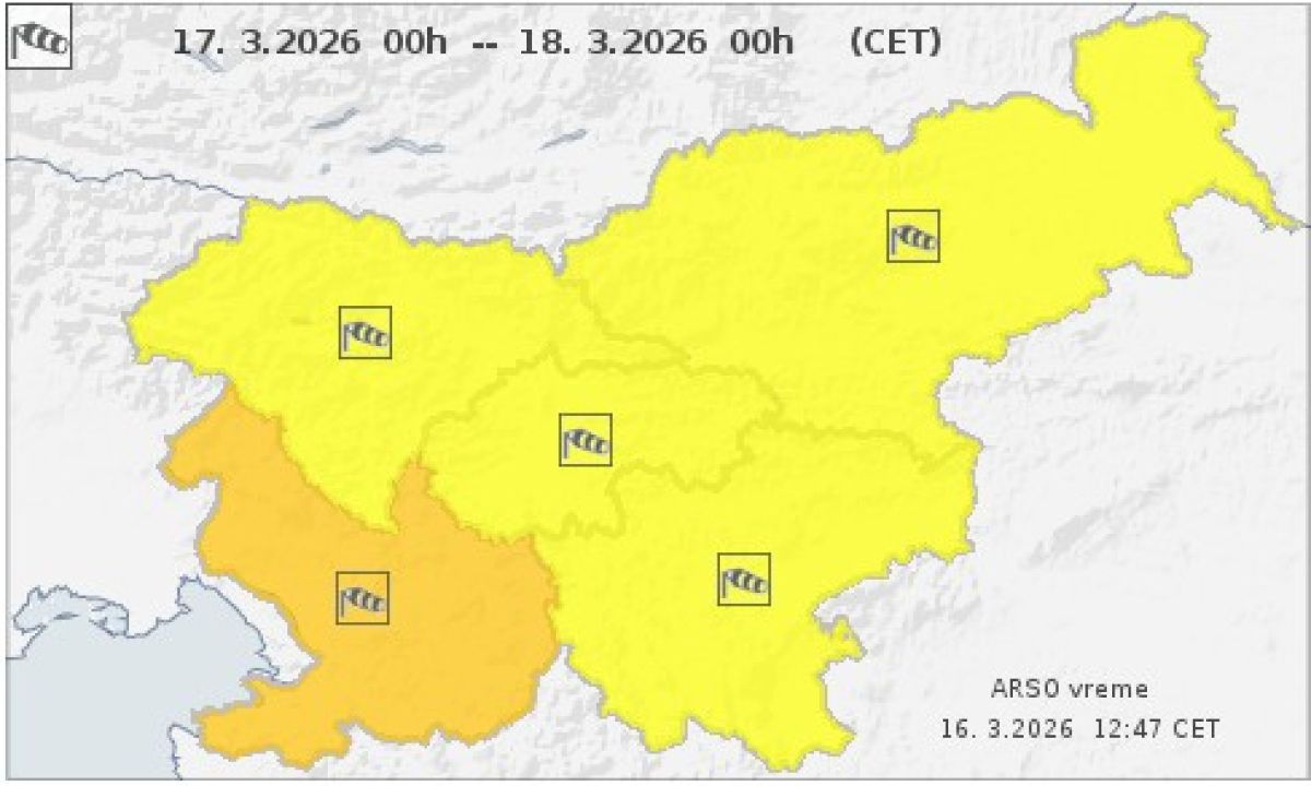 Na Agenciji za okolje so za noč iz torka na sredo ter v sredo čez dan za jugozahod države izdali oranžno opozorilo zaradi burje. Sunki bodo namreč na izpostavljenih mestih presegali hitrosti 100 kilometrov na uro. Za preostali del države so zaradi vetra izdali rumeno opozorilo.