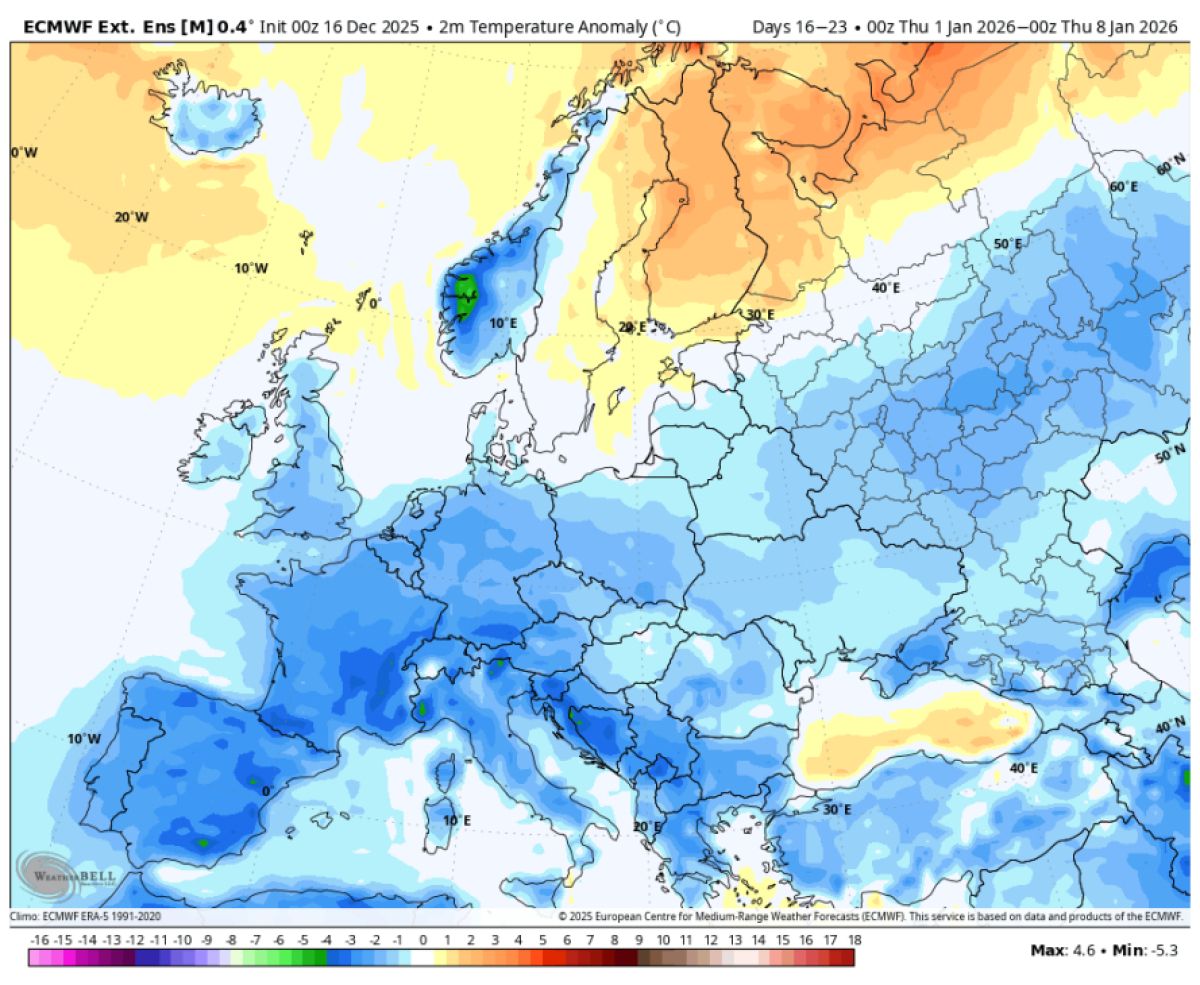 Ob tem so še dodali, da pogled v prvi januarski teden kaže, da bodo temperaturno nekaj stopinj pod povprečjem.