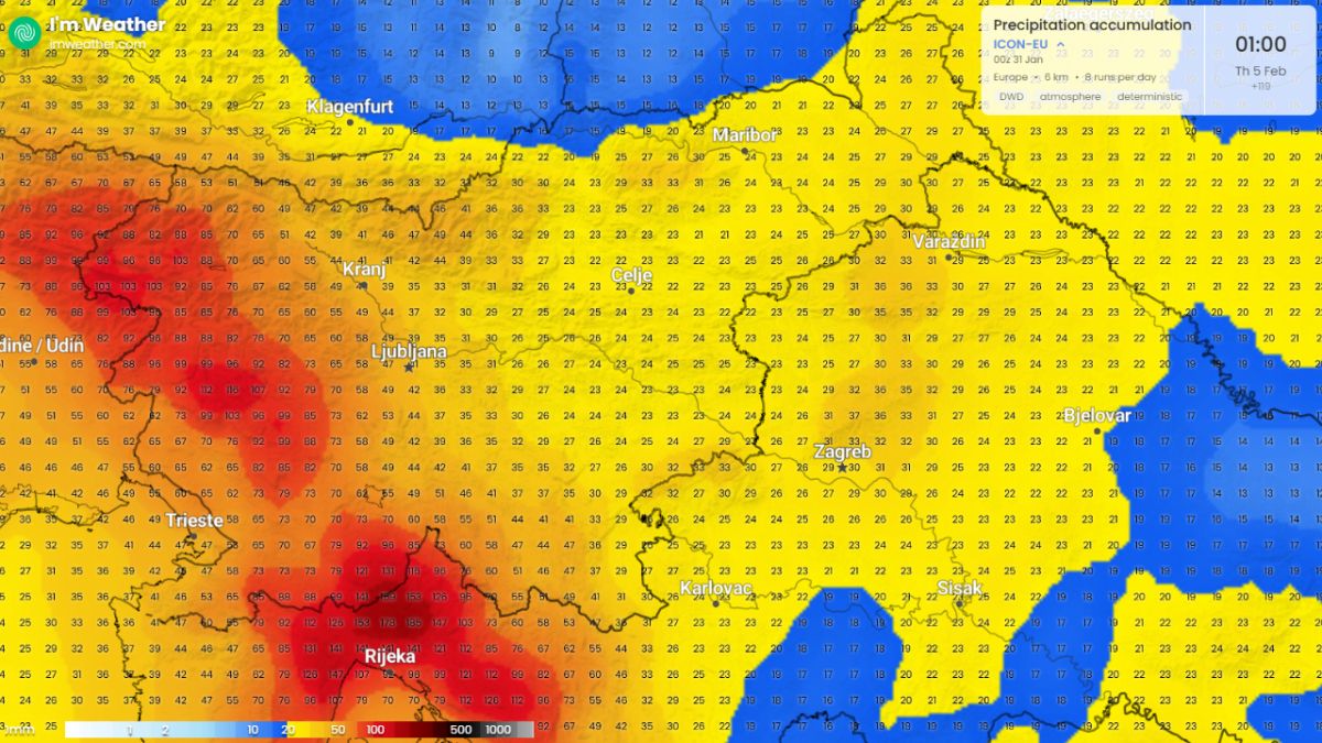 Največ padavin po njihovi napovedi za zdaj kaže na sredo. Ob vplivu fronte lahko pričakujemo več padavin povsod, največ še vedno na zahodu. Ob morju se bo v tem času krepil jugo, tudi tam bo pogosto deževalo, meja sneženja pa bo večinoma nad 1500 metri.