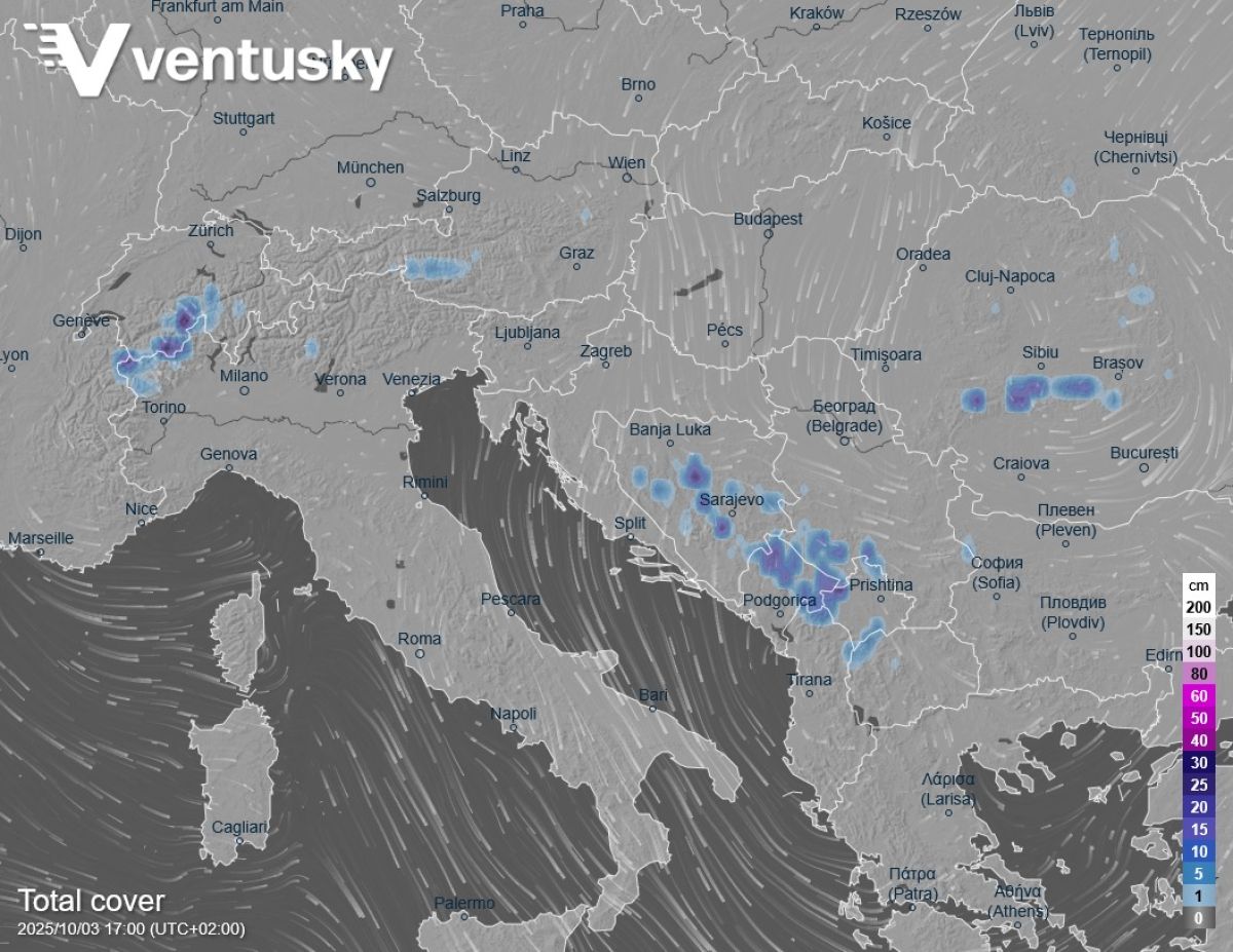 Večina gorskih območij na Balkanu in delno v Srednji Evropi bo tako doživela prvo sneženje po poletju. V petek lahko na višjih nadmorskih višinah zapade več kot 20 centimetrov snega, kar bo na Balkanu pomenilo zelo zgodnji začetek sneženja v gorah.