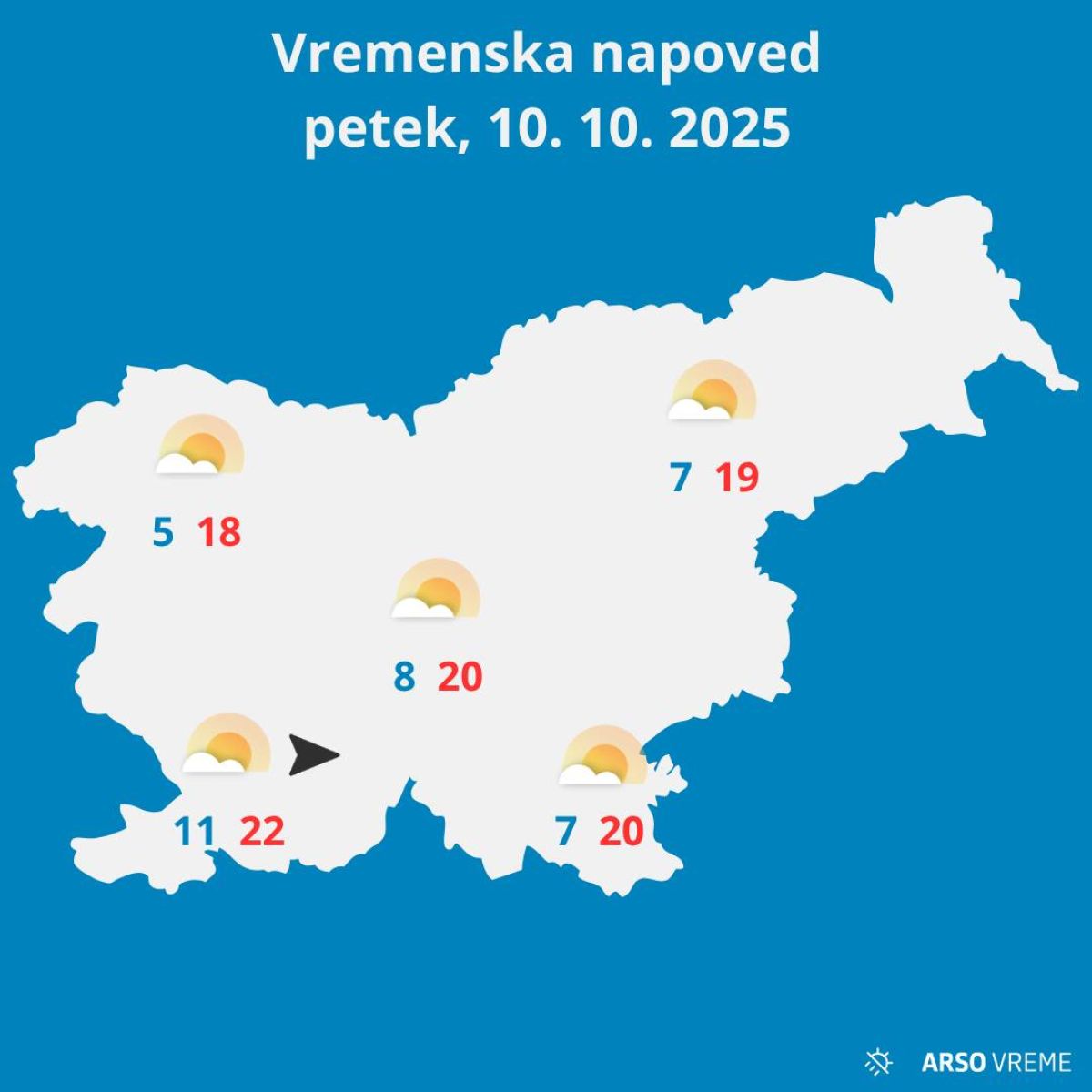 V petek se nato vrača »tipičen jesenski vzorec z jutranjo meglo po kotlinah in pretežno jasnim vremenom čez dan,« so še napovedali na Arsu.