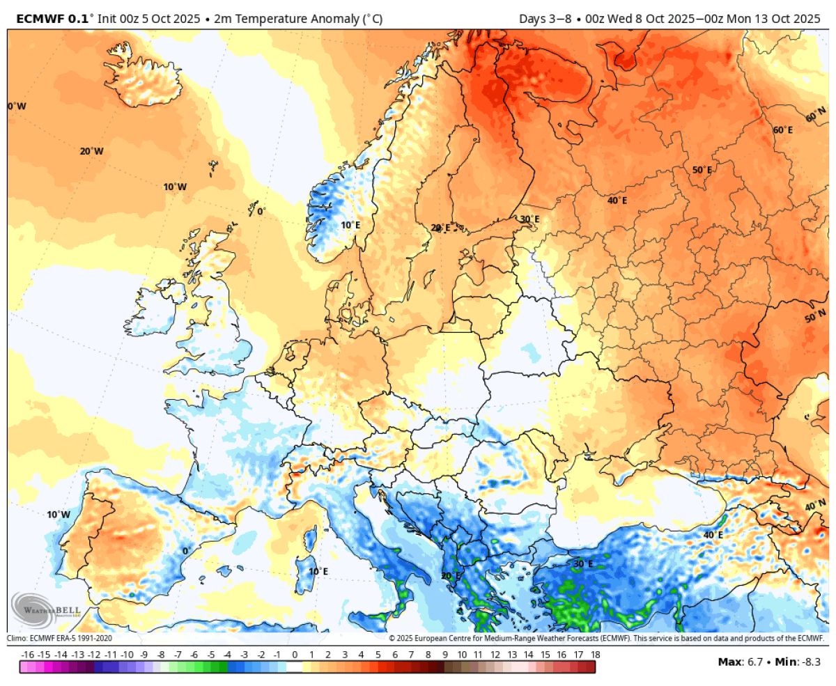 "Bomo videli, kaj se bo zgodilo v Sredozemlju ob dotoku bistveno hladnejšega zraka s severa Evrope," so zapisali in dodali: "Hkrati pa se bo nad Grenlandijo okrepil soliden greben(spust AO in NAO), tole so povsem zimske situacije in vprašanje je, kaj se bo zgodilo z oktobrom na koncu. Zaenkrat nič ne kaže, da bi bil posebej topel, verjetno bo šel po oktobru 2021".