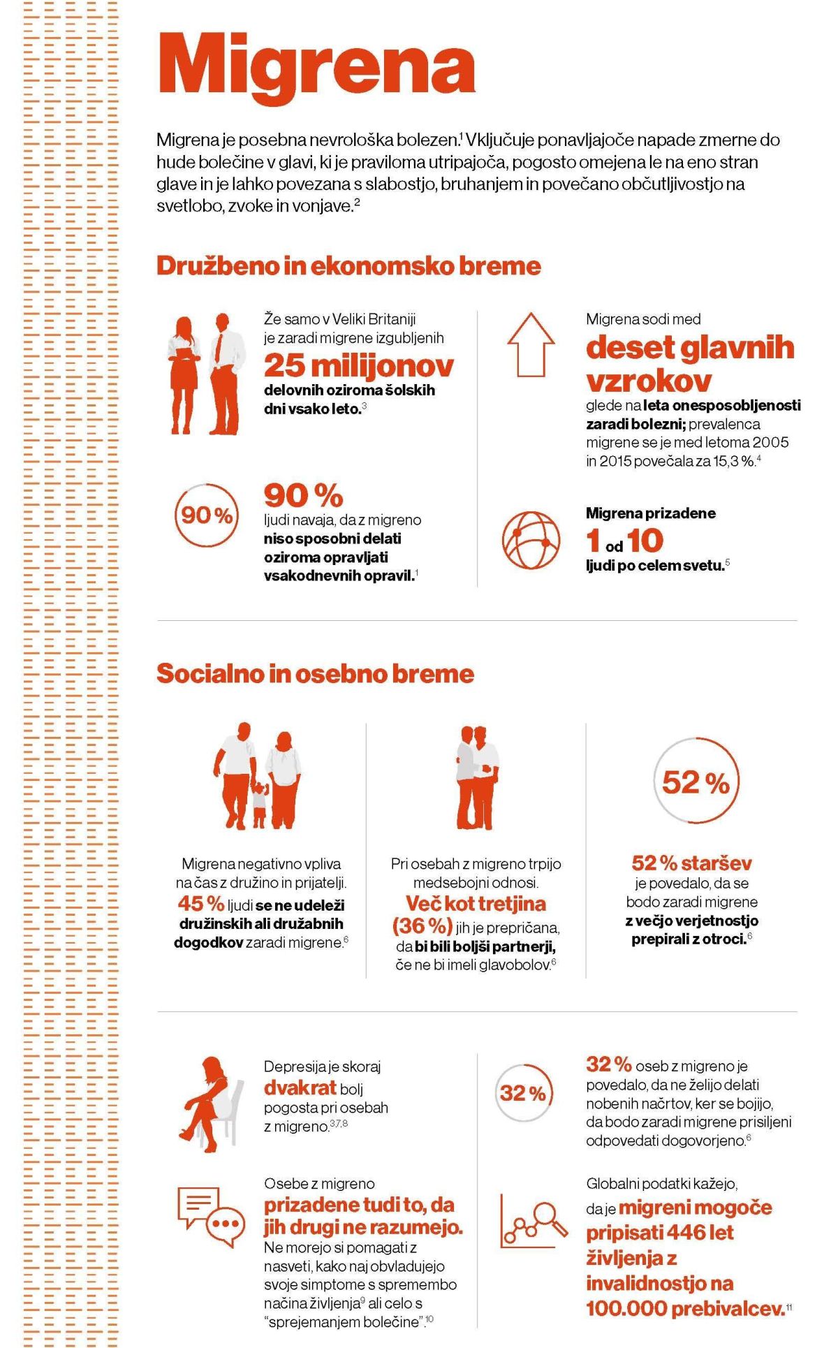 »Čeprav deluje kot nevidna bolezen, je migrena drugi vodilni nevrološki vzrok za leta, preživeta z invalidnostjo. Migreni se namenja premalo pozornosti, čeprav v Evropski uniji po ocenah ustvari sto milijard evrov stroškov na leto,« je na tiskovni konferenci o migreni povedala prof. dr. Patricia Pozo Rosich, specialistka nevrologinja, vodja klinične enote za glavobole in kraniofacialne bolečine v Univerzitetni bolnišnici Vall d'Hebron v Barceloni.