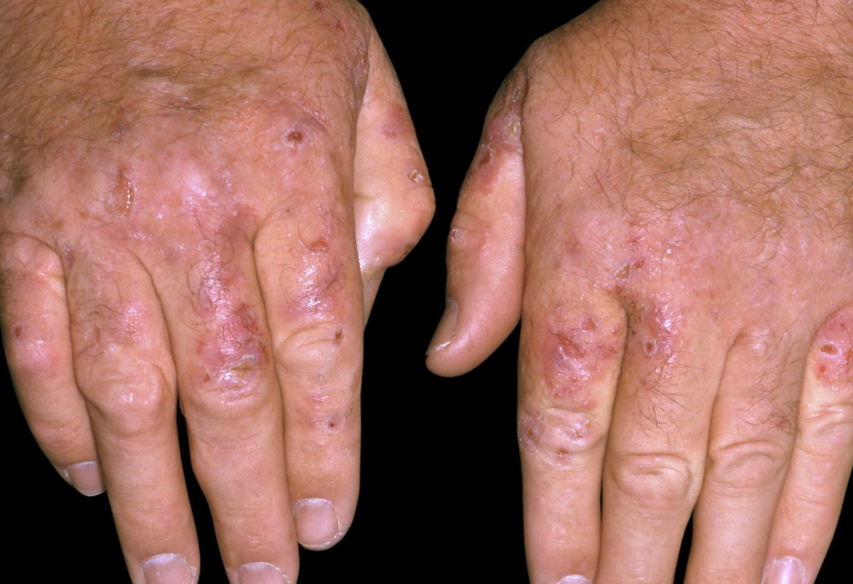 - Kožni izpuščaji, mehurji — lahko mislimo na kožne bolezni