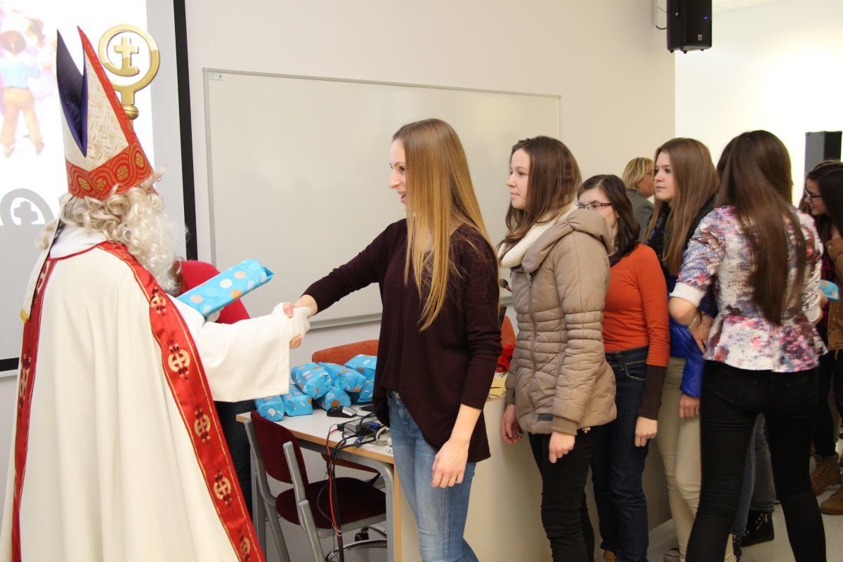 Mlade prostovoljce in vse zbrane na prireditvi, ki so jo sooblikovali učenci šole, je na koncu z obiskom razveselil še prvi od decembrskih dobrih mož Miklavž in jih obdaril.