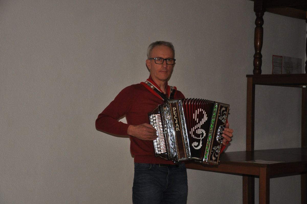 Sledila je večerja in druženje. Na harmoniko je zaigral nekaj pesmi Lojze Murgelj in tako popestril naše srečanje. Posladkali smo se s torto. Zaželela sem vsem vse dobro, tako kot je bilo zapisano na torti, torej sreče in zdravja ter prijaznejše leto, prebrala voščilo ter Pavčkovo pesem Popotnik.