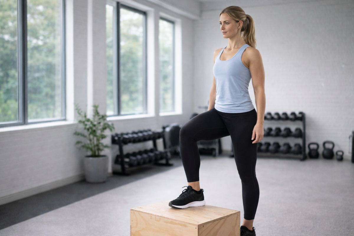 Postavimo se pred nizko klop ali stopnico. Eno stopalo položimo nanjo in se z močjo te noge dvignemo navzgor, drugo nogo priključimo. Koleno naj med dvigom ostane poravnano s stopalom in ne uhaja navznoter. Nato se nadzorovano spustimo nazaj na tla in ponovimo z drugo nogo.
