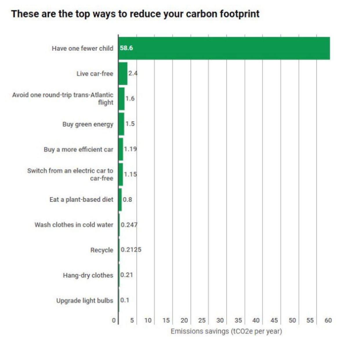 Recikliranje, pranje pri 30 stopinjah Celzija in uporaba varčnih žarnic pripomorejo k dobrobiti okolja, a če bi res radi pomagali planetu, ne imejte otrok, kažejo rezultati raziskave.
