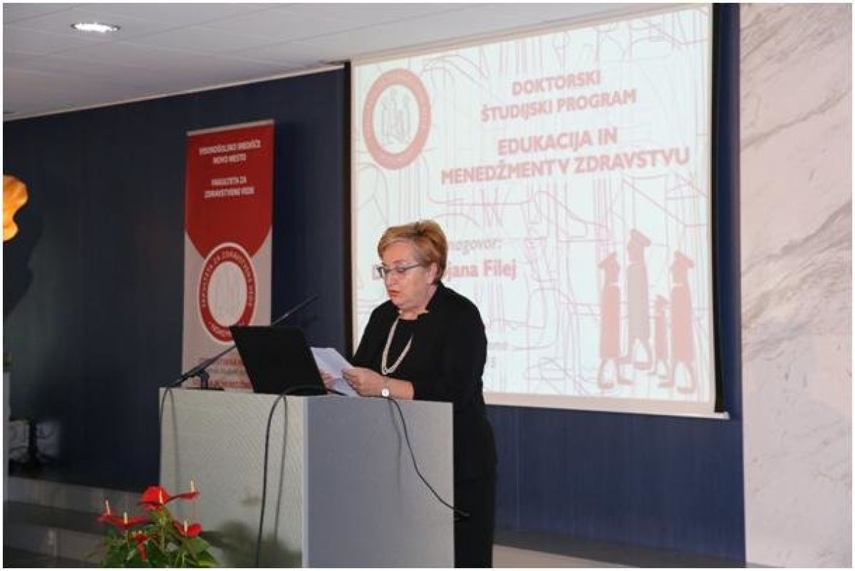 Uvodni del konference smo posvetili slavnostni promociji doktorskega študija Edukacija in menedžment v zdravstvu, ki se bo začel izvajati v študijskem letu 2016/17. Akreditacija študijskega programa predstavlja pomemben mejnik v razvoju fakultete, saj je to prvi doktorski študij v Sloveniji, ki je namenjen predvsem razvoju kariere diplomiranih medicinskih sester in drugih strokovnih kadrov v zdravstvu. Ob tem smo se zahvalili vsem, ki so prispevali k pripravi tega doktorskega študijskega programa. Njegov pomen za stroko in znanost je predstavila slavnostna govornica doc. dr. Bojana Filej.