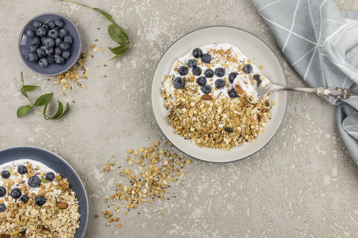 - Zajtrk: skleda s smutijem, z borovnicami, kokosom in lanenimi semeni