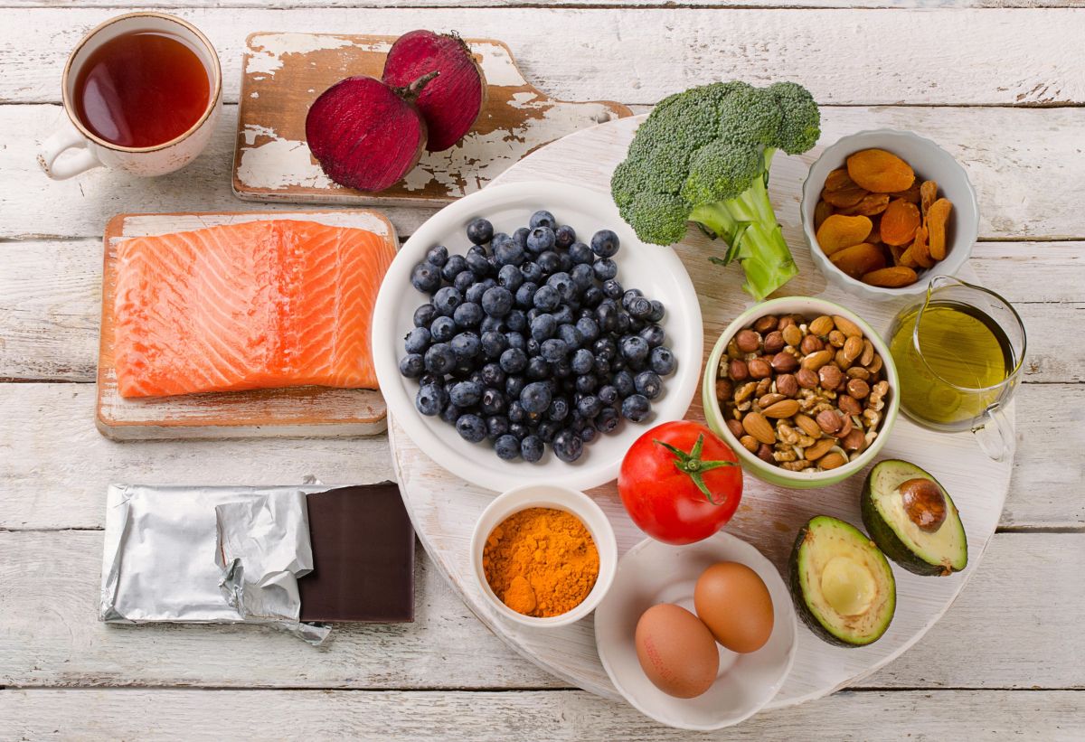 - Sadje in zelenjava, bogata z antioksidanti (borovnice, špinača, brokoli, rdeča pesa, jagodičevje).