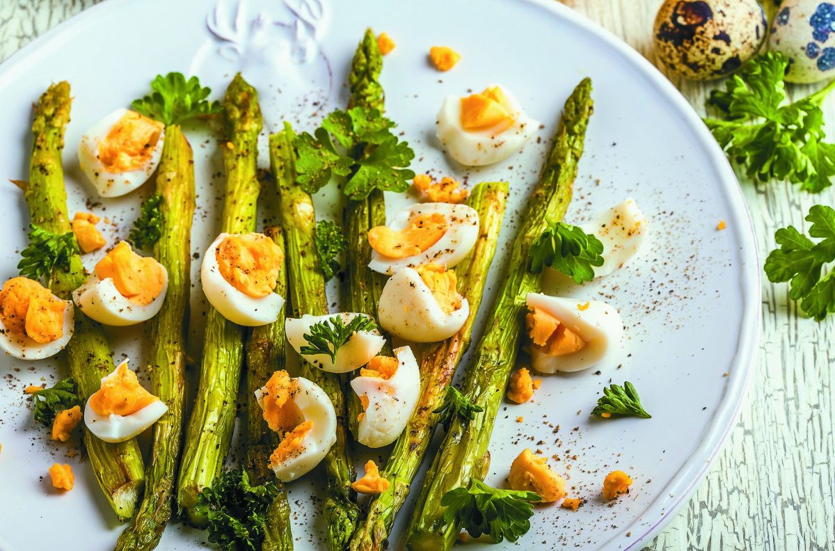 Priprava: V ponvici segrejte košček masla in malce prepražite odcejene šparglje. Nato ubijte zraven jajce, malce pomešajte ter začinite s soljo in poprom.