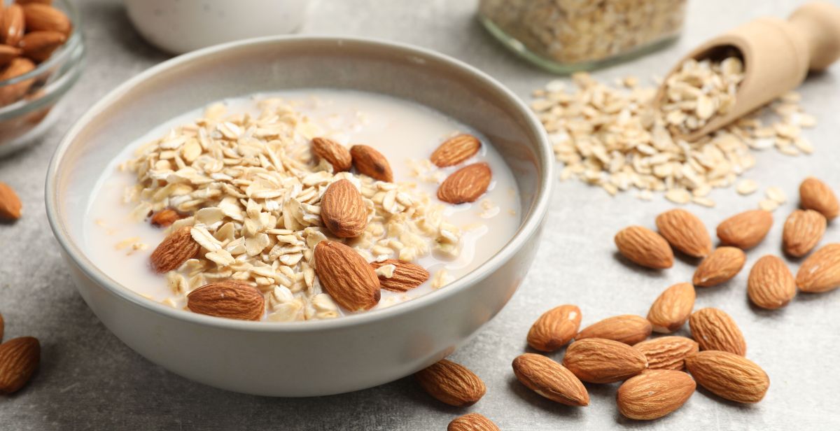 3. Ovsena kaša z mlekom in oreščki (približno 20 g beljakovin)