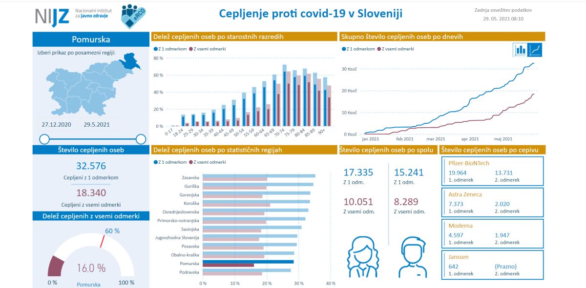 Po podatkih spletne strani cepimose.si je bilo za zdaj 32.576 Pomurcev cepljenih z enim odmerkom cepiva proti covidu-19, 18.340 pa cepljenih z vsemi odmerki.