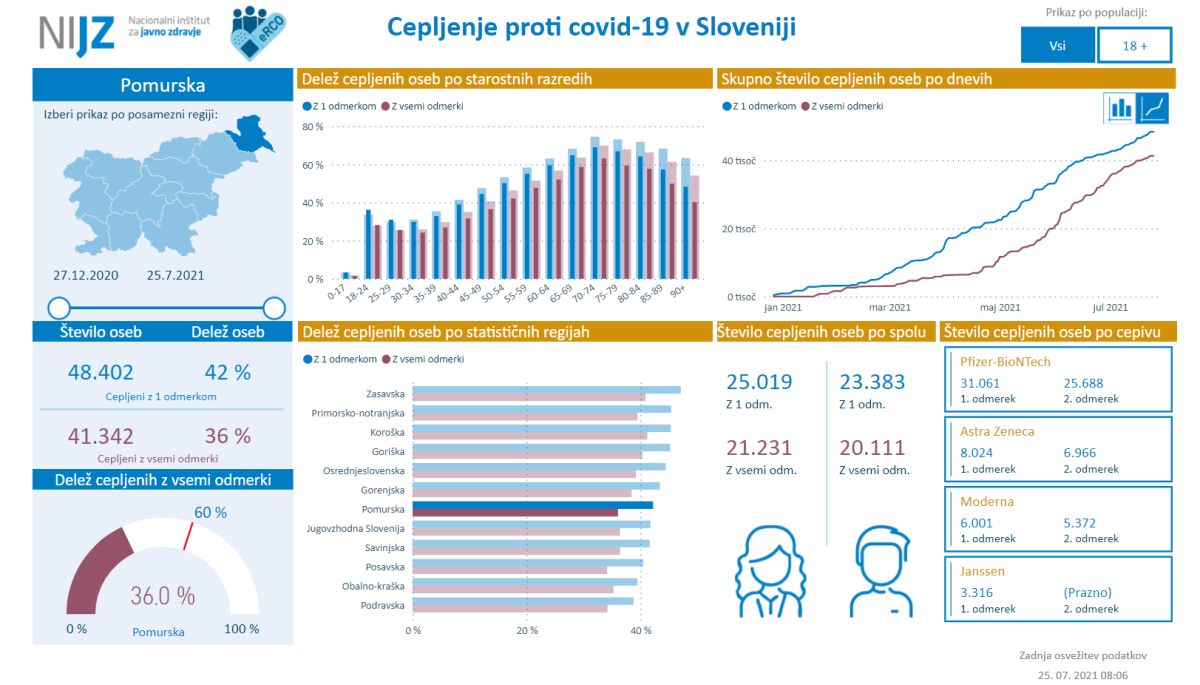 Polno cepljenih je 788.958 oseb, kar predstavlja 37,4 odstotka populacije, še kažejo podatki Sledilnika za covid-19. V Pomurju je polno cepljenih 41.342 ljudi, to pa predstavlja 36 odstotkov populacije.